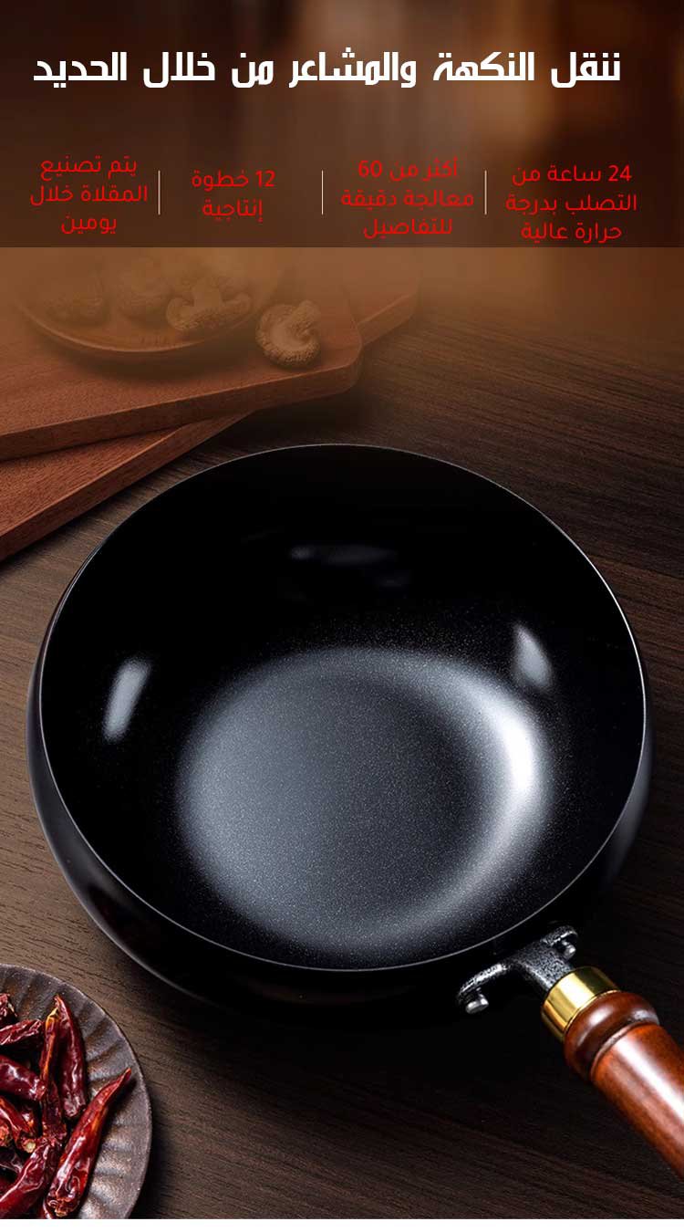 مقلاة عميقة صحية مانعة للالتصاق بدون الطلاء (حديد نقي، توفير عنصر الحديد للجسم )